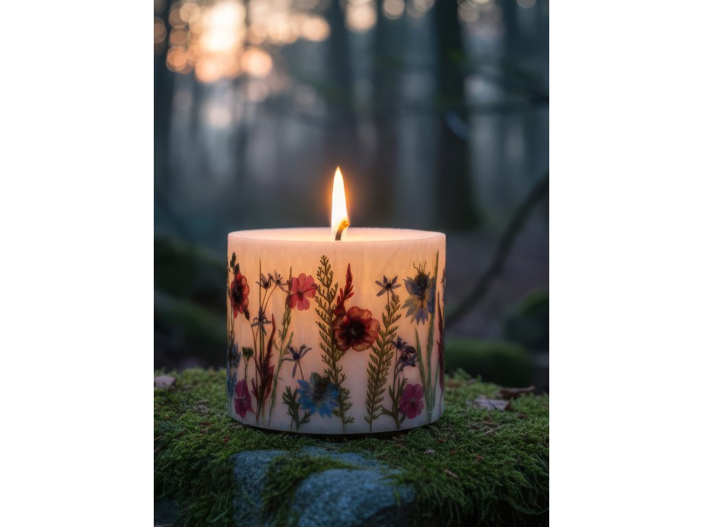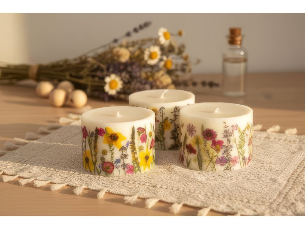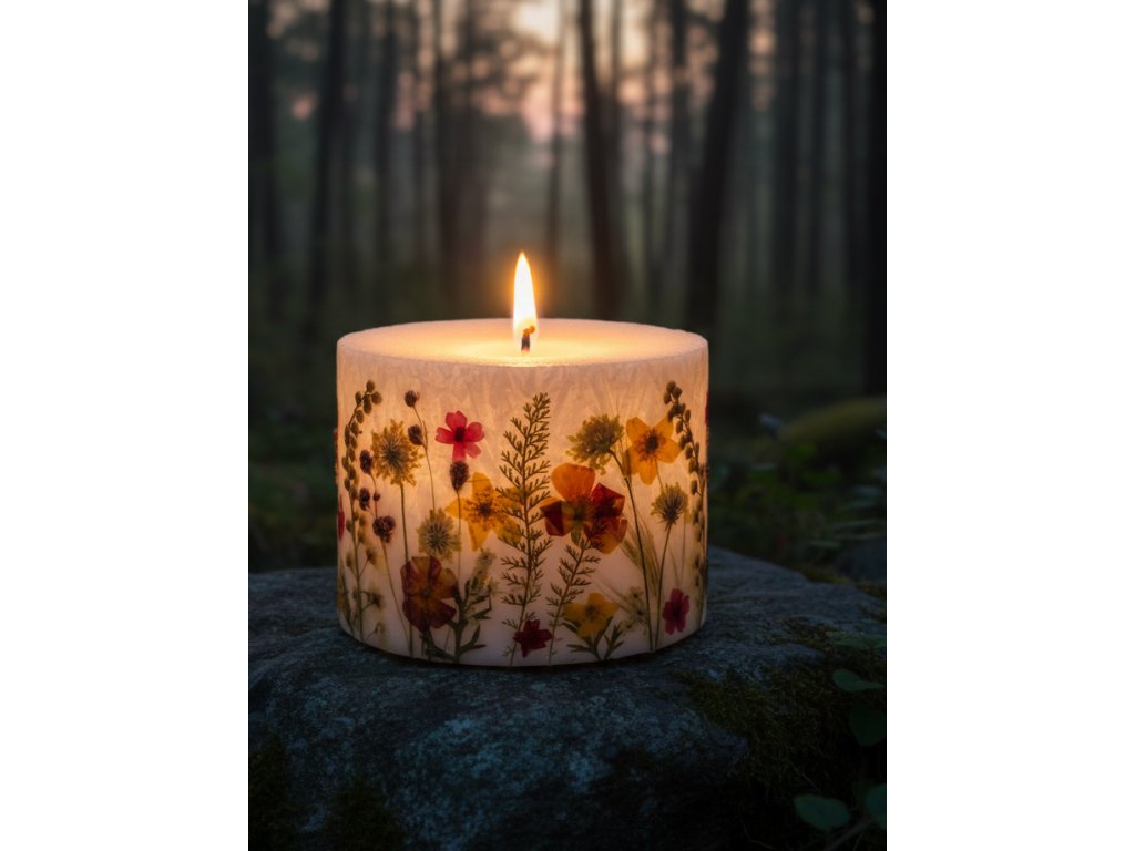 🌼 Věčně krásné květiny: Každá svíčka je originál, zdobený ručně vylisovanými květinami, které dodají vašemu interiéru přírodní eleganci.