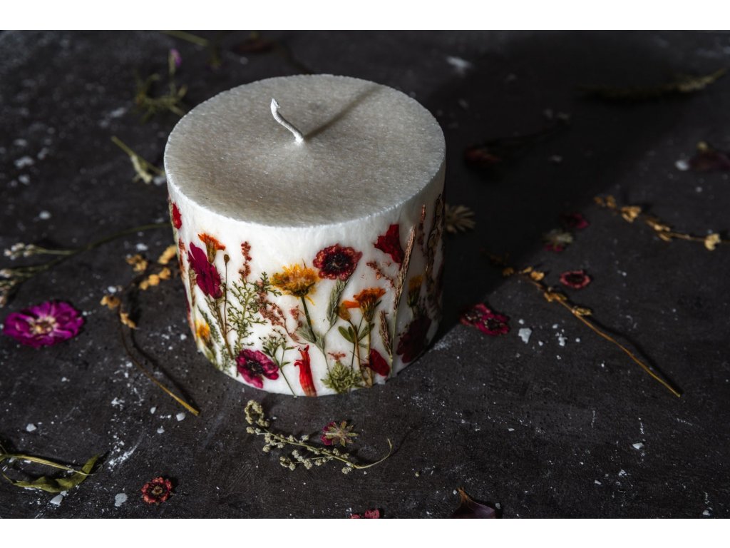 Ručně vyráběná svíčka s jemnými, vylisovanými květinami, která spojuje eleganci a funkčnost. Její unikátní kulatý design střední velikosti z ní činí perfektní doplněk na stůl. Po prohoření se snadno promění v nádherný lampion, který dodá vašemu domovu útulnou atmosféru. 🌸🕯️