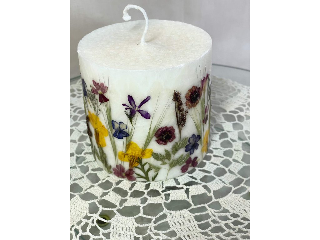 > Už při prvním zapálení začne prosvítat – květiny se postupně vynořují, jejich tvary se proměňují a krystalický palmový vosk zachytává světlo jinak s každým pohledem.