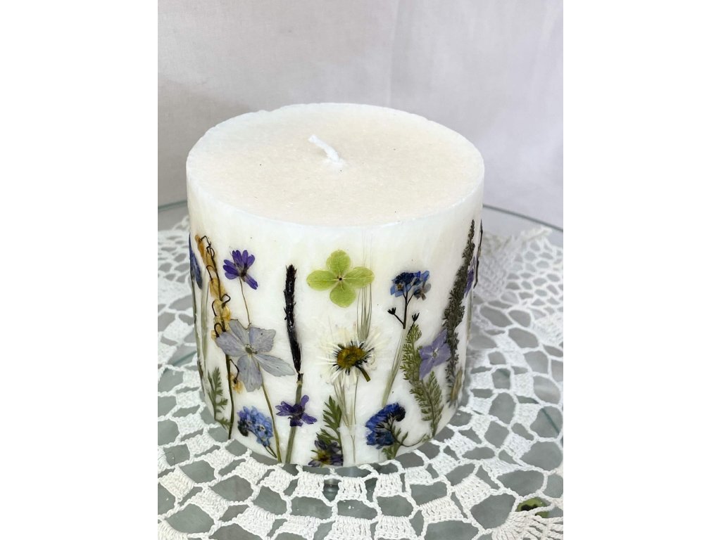 Do jedné svíčky Rondele je ručně vsazeno více než 50 vylisovaných květin. Každá projde mýma rukama několikrát – při pěstování, lisování i samotném vkládání do vosku. Výroba jednoho kusu je rozložená do více dnů.