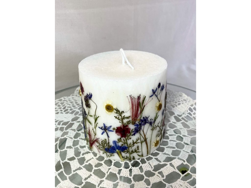 Vzniká z květin, o které se starám od začátku až do konce – při růstu, lisování i skládání. A také z vosku, který si připravuji sama.